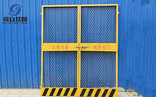 電梯防護(hù)門全部由鋼結(jié)構(gòu)組成。鋼材采用標(biāo)準(zhǔn)材料,制作嚴(yán)格按圖施工,尺寸正確,焊接點(diǎn)牢固,達(dá)到安全防護(hù)之目的,電梯安全門采用檸檬黃色,門下部檔架板采用黃、黑間隔。采用氬弧焊結(jié),強(qiáng)度高,質(zhì)量穩(wěn)定,強(qiáng)力摔、扭不脫焊。