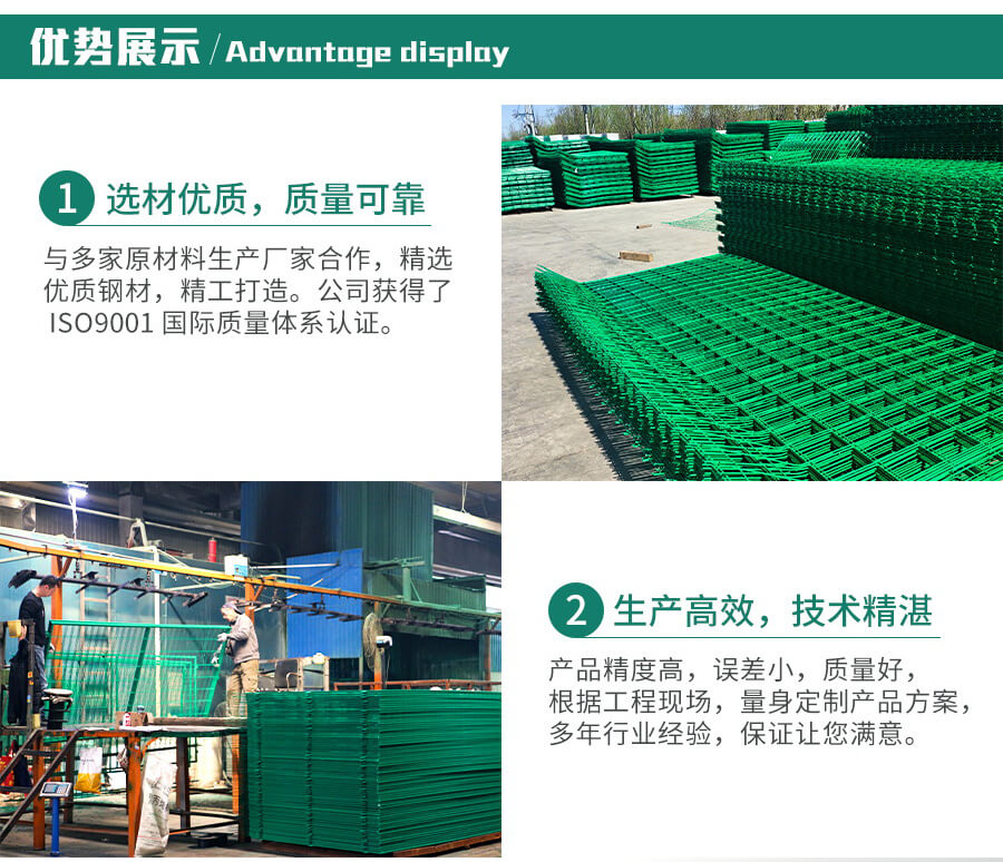 表面處理方式:圍網(wǎng)采用PE/PVC包塑,立柱、橫管采用噴塑、浸塑處理。