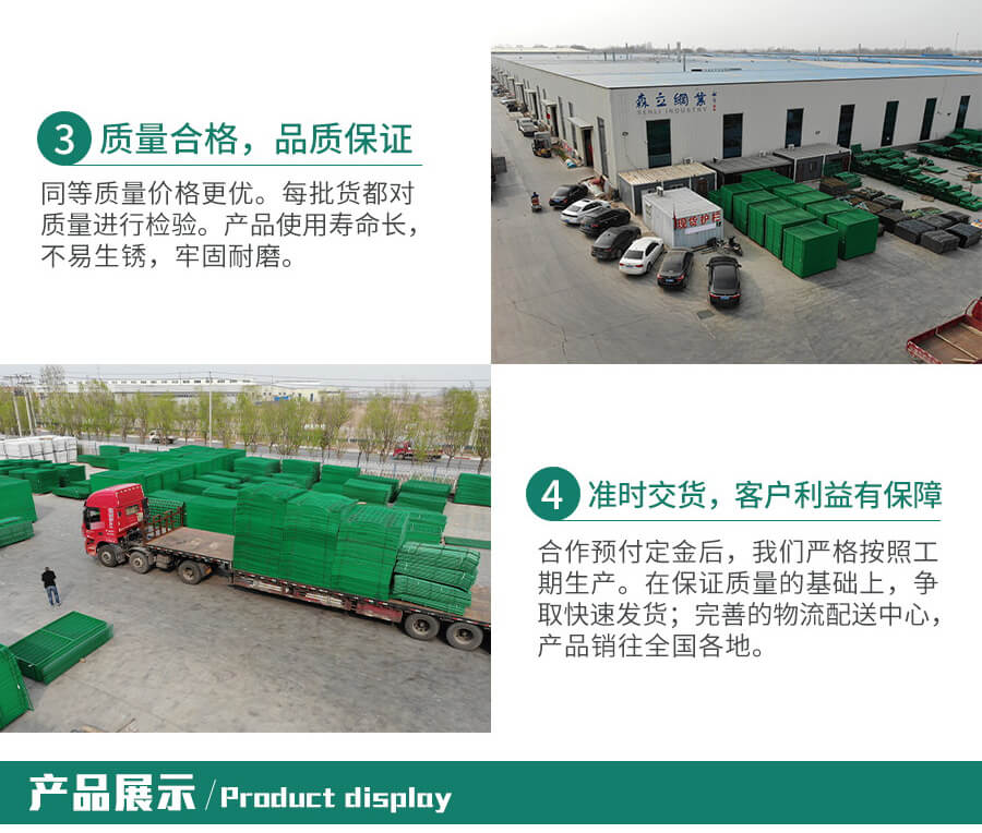 產(chǎn)品優(yōu)點;色彩鮮亮,外形美觀,抗老化,耐腐蝕,規(guī)格齊全,網(wǎng)面平整,強力張緊,不易受外力撞擊變形?,F(xiàn)場施工安裝,產(chǎn)品最大特點是靈活性強,可根據(jù)現(xiàn)場要求隨時調(diào)整造型和尺寸,后期維護方便,圍網(wǎng)采用優(yōu)質pe、PVC材質包塑鐵絲,使用壽命長達10-15年。